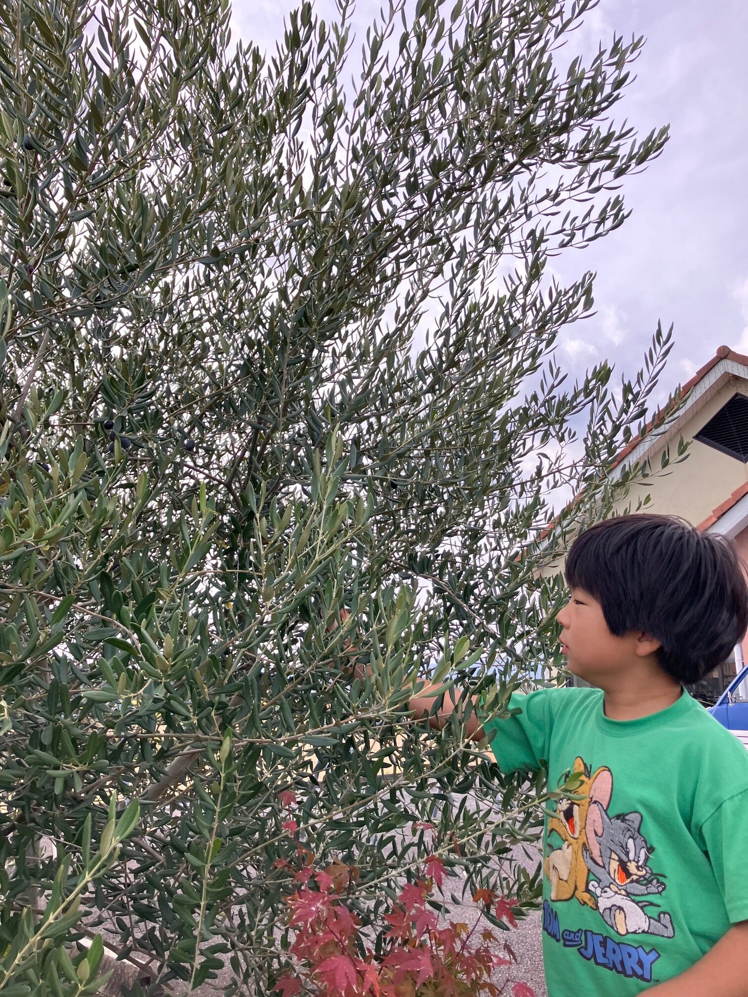 数年前に周年記念植樹していただいたオリーブの樹が大きく育ち、昨年ぐらいから沢山の実をみにつけるようになりました。先日その実を次男と一緒に摘み取ったので、今年こそはうまく調理して有効にいただこうと思っています。