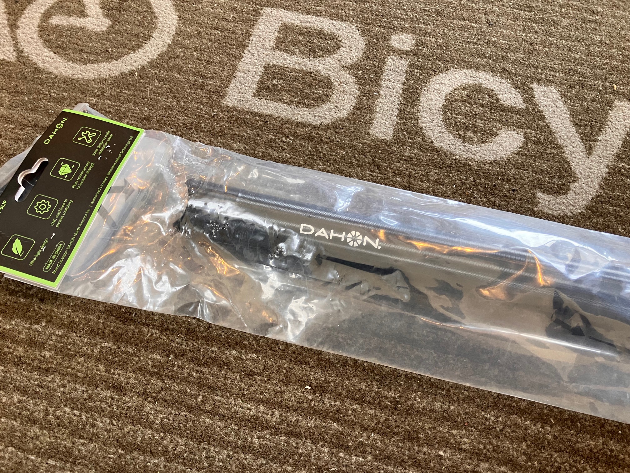 ダホンのオプションパーツにこんな軽量シートポストがあるとは知りませんでした。例えば、K3の標準シートポストは約420gと言われています。一方、ウルトラライトシートポストは、約320gとありますので、これに交換するだけで約100gの軽量化が可能です。元々8.2kgと非常に軽いK3ですが、更に100g軽くすることで持ち運びがさらに便利になります。タイヤを太くしたり、グリップを変えてみたり、軽量化してみたり、ミニベロでも色々カスタムが可能です。気軽にご相談ください。