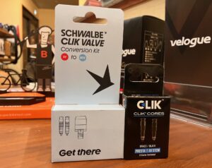 米式バルブをよりスマートにしたような形状のクリックバルブを既存の仏式バルブコアと交換します。