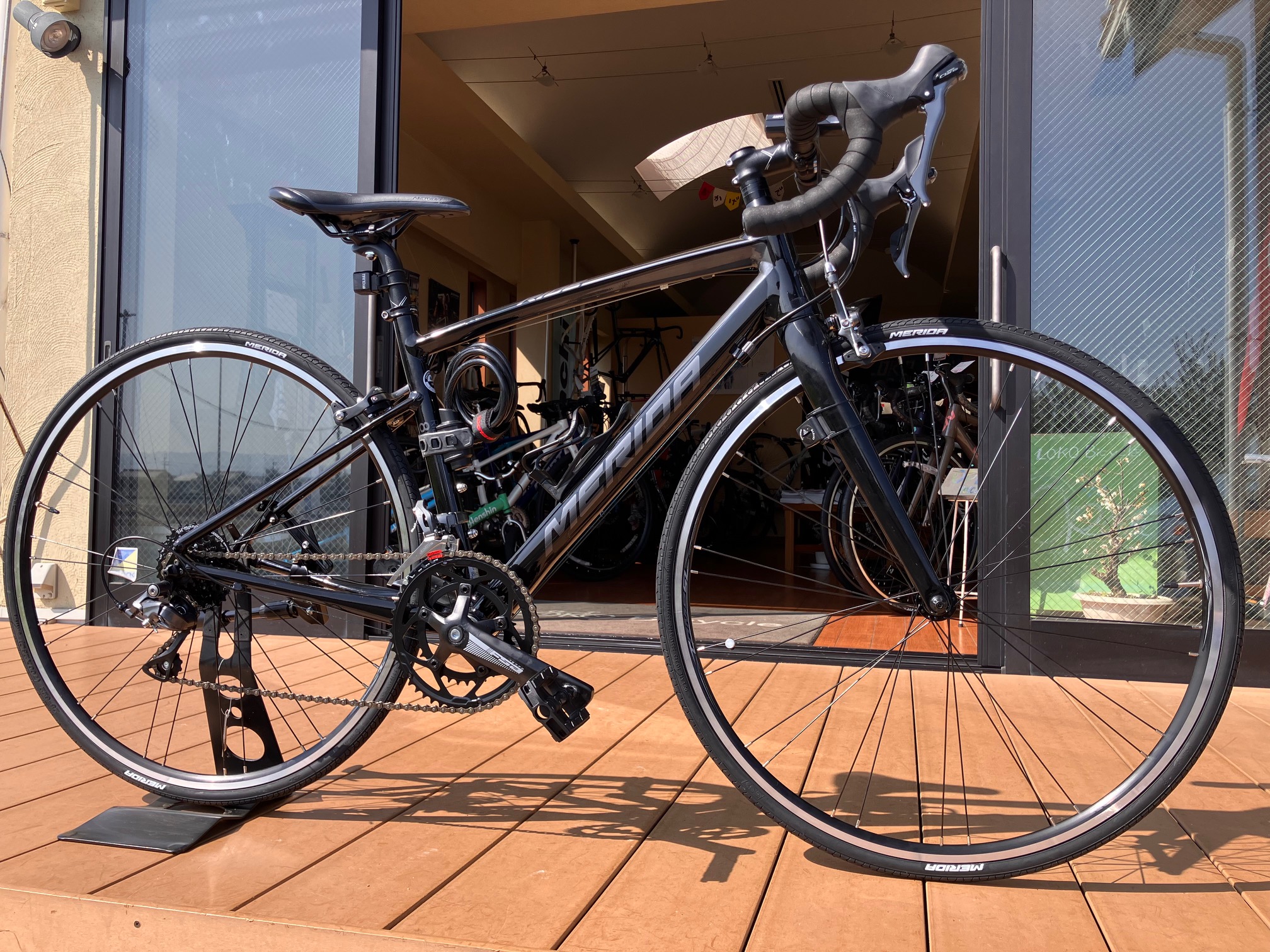 近々迎えられるご結婚を機に車での通勤をやめ、自転車通勤を考えていますとご相談いただいた結果、MERIDAのRIDE80をご用意させていただきました。このライド80は、ロングライドのための基本性能を追求したエントリーモデルです。特徴的な扁平チェーンステーによって振動吸収性能が向上したフレームを採用。コンポーネントはシマノ製クラリス、ブレーキキャリパーまでクラリスを採用しブレーキ制動にもぬかりがありません。ペダルも付属してきますのですぐにお乗りいただけます。ご家庭のためにも毎日4・5キロの通勤ライドを頑張ってください!