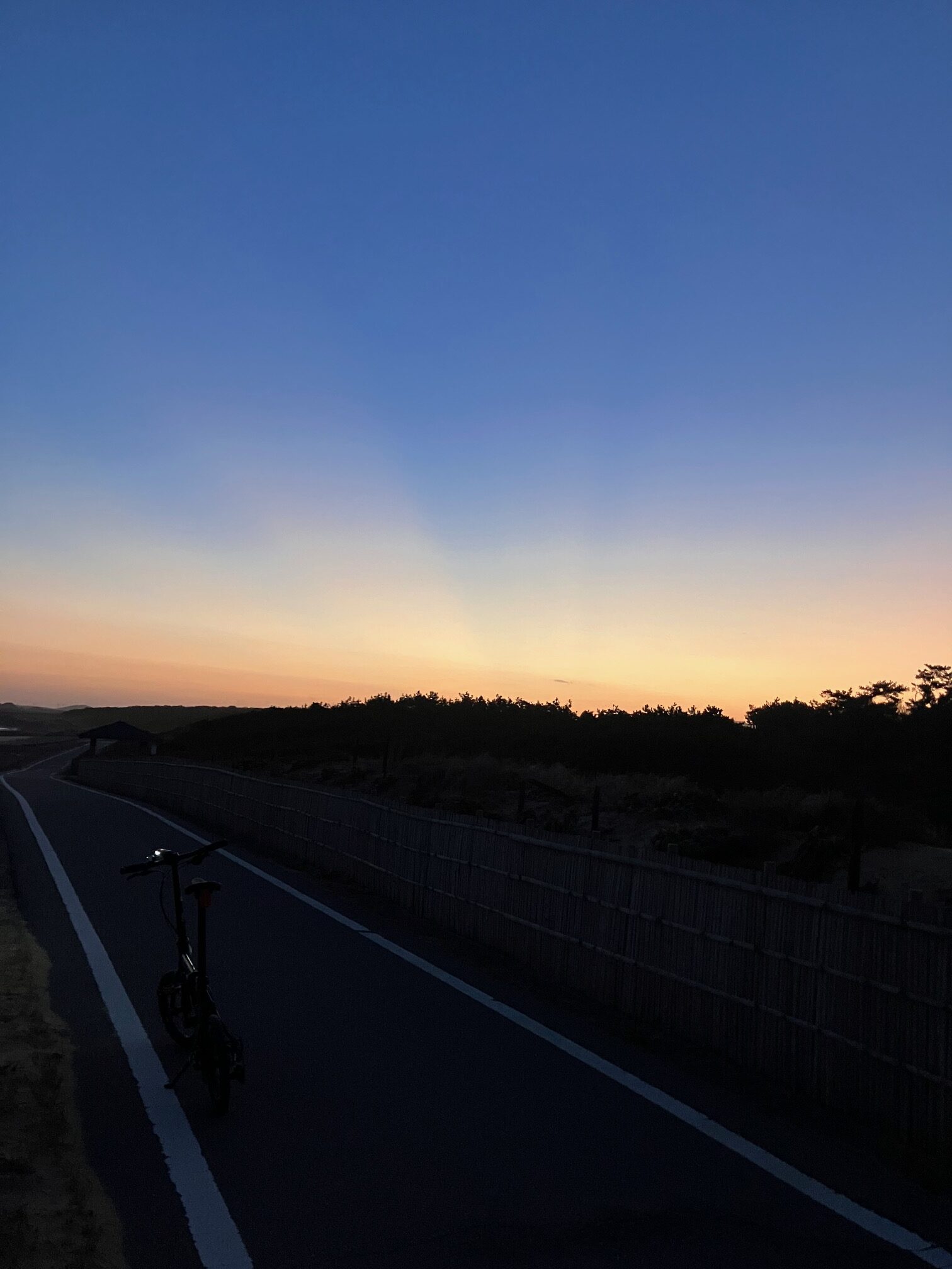 朝陽が顔をのぞかせる少し前の薄明がとても綺麗で、何度も自転車を停めてはスマホで写真を撮っていました。