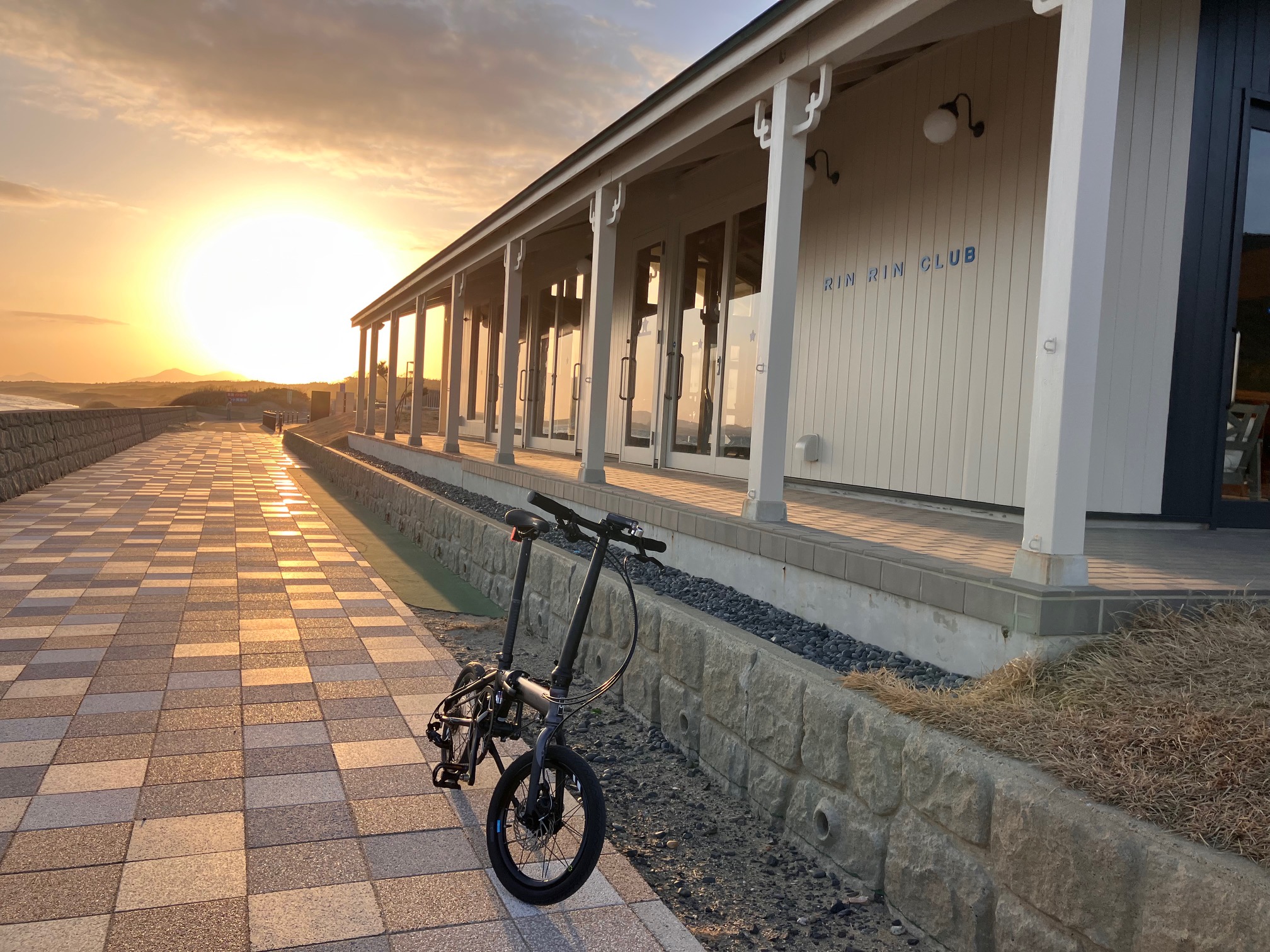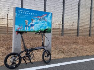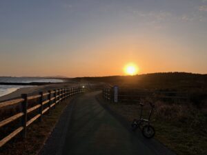 翌朝は、まだ夜も明けない時間からDAHNのK9Xを車からひっぱり出し、宿のすぐ傍をはしる遠賀宗像自転車道を岡垣町から東へ向かった芦屋町までの往復約16kmをサイクリングしました。