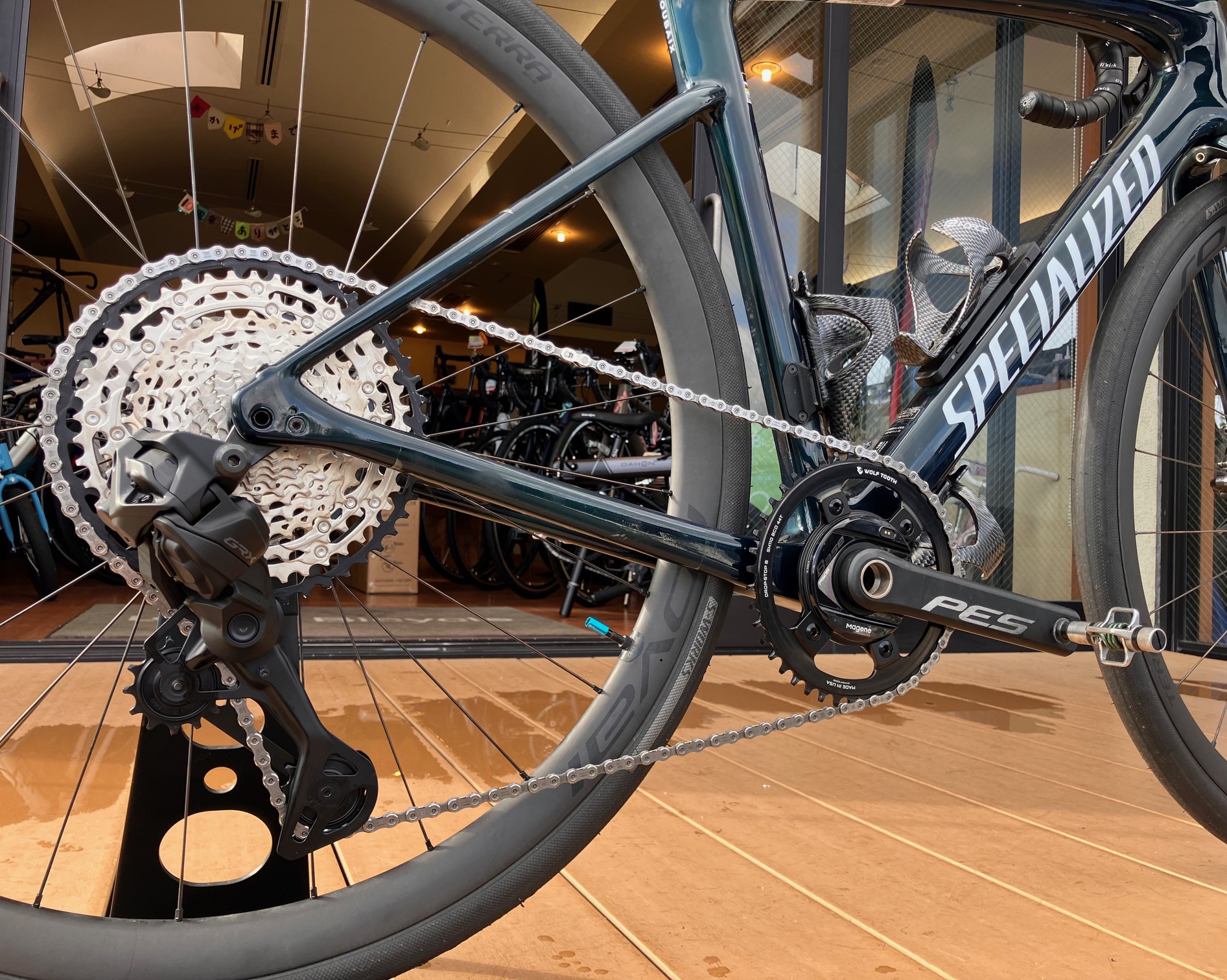 スペシャライズドのエンデュランスロードに、シマノのグラベル用コンポGRXから昨年12月に新登場したフロントシングル仕様かつDi2電動変速のリアディレイラーRD-RX717をインストールさせていただきました。