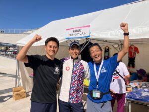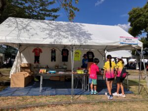 9/27(土)と9/28(日)は、国スポのトライアスロン競技会場にてトライアスロン競技限定グッズや国スポグッズを販売するスポーツアシストさんのブースお手伝いとして、おもてなしエリアで出店&販売しておりました。