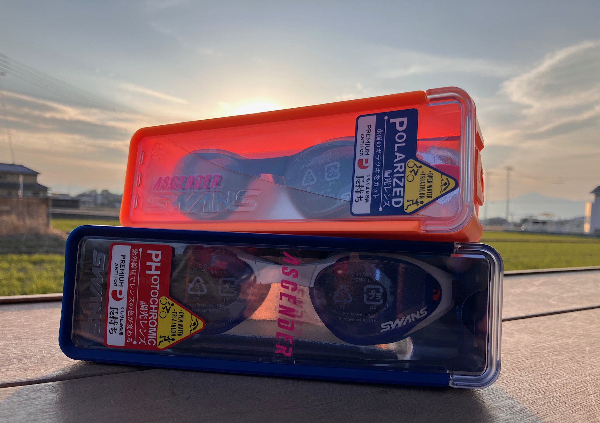 早速、SWANSのオープンウォーターモデル「ASCENDER」が入荷してきました。今回入荷したのは、紫外線量によってレンズカラーが変化する調光レンズ搭載のモデルと水面からの光反射をカットしてクッキリとした視界を確保する偏光レンズを搭載したモデルです。流水抵抗の低減を実現した大き目のカーブレンズにクッションが付いているのでフィット感が良く安心感が違います。もり止め効果が長持ちするレンズともなっています。もちろんプール使用も全然おかしくありませんので、日々の練習からレースまで幅広くお使いいただけるゴーグルです。シーズンインの前に慣れておきましょう。